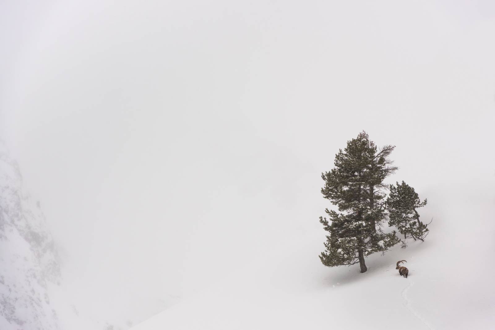 Blanc sauvage est une immersion dans des paysages de nature sauvage immaculés où la neige et le vent redessinent les formes du paysage. Par un cadrage minimaliste et une attention portée aux textures, je propose un regard sensible sur la fragilité et la force des milieux sauvages, et sur la manière dont la lumière transforme chaque surface en terrain d’étonnement. Certaines photographies isolent un détail, un arbre recouvert de neige, un animal dans son environnement, tandis que d’autres ouvrent sur de vastes panoramas où l’échelle et le silence prennent toute leur place.
