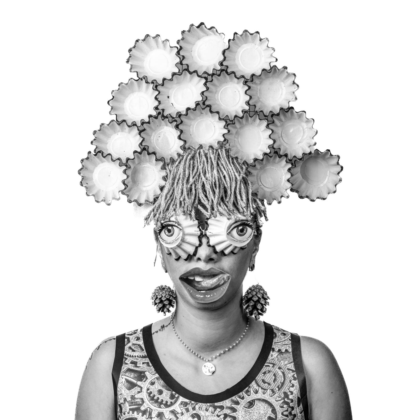 vivant travesti d’objets détournés, d’accessoires fabriqués « maison » pour une représentation très improbable du portrait tel que chacun peut se l’imaginer.